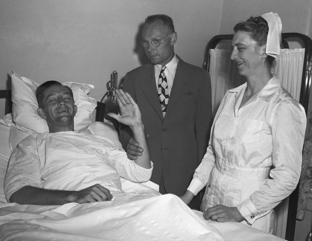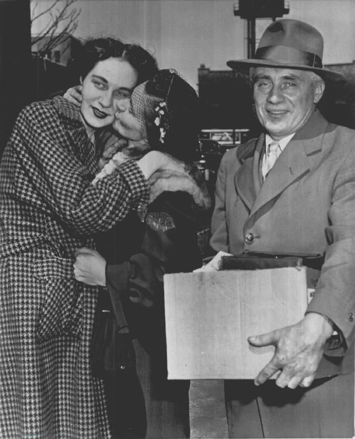 Ruth Ann spent three years in Kankakee, repeatedly under going electroconvulsive shock therapy, as well as hydro and occupational therapy. In April 1952 the doctors deemed her to be “cured”. The prosecutors office asked if Eddie wanted to pursue a case against Ruth Ann, and he said no. Ruth Ann was never tried for her shooting of Eddie Waitkus. When the 22 year old was released into the custody of her parents (above), Ruth Ann told reporters she was going to go to work at the Kankakee hospital as a physical therapist, but she never did.