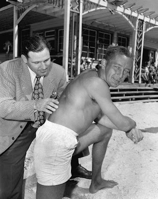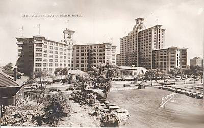 Two miles north of the ballpark, the Edgewater Beach Hotel (above) had opened on Chicago's North Shore in 1916, just in time for the Roaring Twenties. With a thousand rooms and twelve stories over looking Lake Michigan, a private beach, tennis courts, swimming pools, a golf course, hiking and riding trails, a five star restaurant, and sea plane service to the downtown Chicago lakefront. The Spanish stucco hotel was the Midwest coast du jour for a decade. During the thirties, Benny Goodman and Artie Shaw played in the outdoor and the indoor ballrooms, and were broadcast over the hotel's own radio station – WEBH. However the depression eventually grew so great it forced the owners to sell, and by 1949, 'The Sunrise Hotel” was an aging dame, concealing the mends in her petticoats - hiding the truth that fame and fortune, and youth and health are merely temporary distractions.