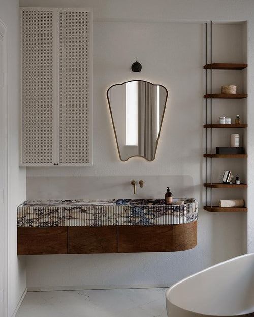 Bathroom storage can be a challenge in smaller bathrooms, but with the right solutions, it doesn’t have to be. Look for recessed shelves, slim, wall-mounted cabinets and shelves to maximize space. You can also add a floating vanity or wall-mounted sink to free up floor space. If you have a tiny bathroom, opt for a pedestal sink to create the illusion of more space.