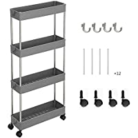 Get Aoteng Star 4-Tier Rolling Trolley Storage Organizer Carts Rack with 4 Storage Baskets and Wheels (5.1D x 15.75W x 34H Inch, Gray) for only $17.99.