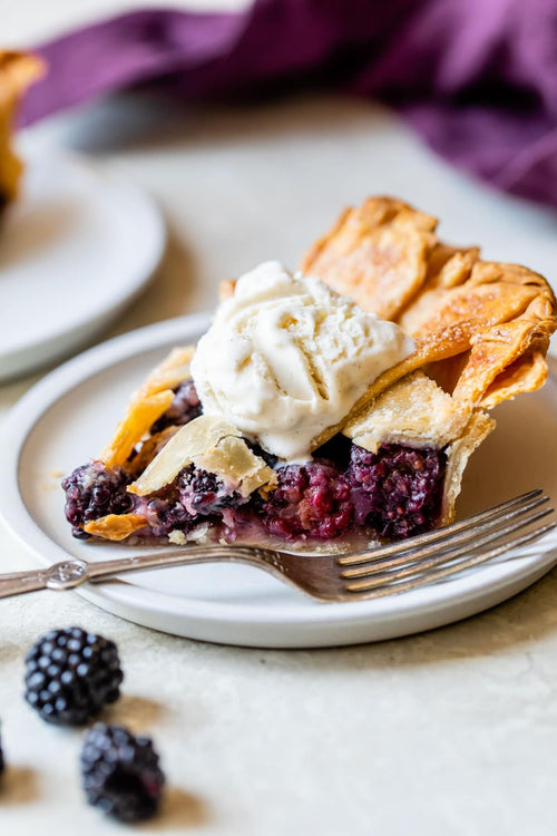 - Vanilla Ice Cream. This is optional for serving, but you’re missing out of you skip it. A scoop of vanilla ice cream (preferably the kind flecked with vanilla beans) melting over slice of warm blackberry pie is absolute bliss.