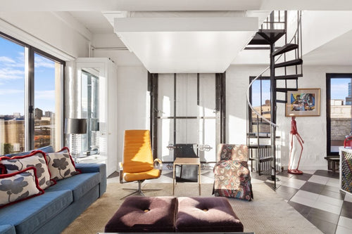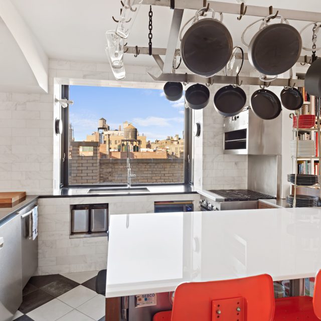 It’s hard to find a truly unique living space in New York City, given space constraints, building regulations and other limitations of apartment life. This unusual penthouse co-op at 755 West End Avenue was designed and renovated by an award-winning architect/resident to create a family dream retreat high above the Upper West Side. With northern, southern, eastern, and western exposures, the apartment takes advantage of light and stunning Hudson River views with a 1,400-square-foot wrap-around private roof terrace and an upper-level glass-clad solarium/greenhouse space. Asking $2,595,000, this amazing home has been featured in print and on HGTV.